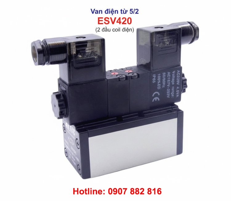 ESV420 là loại van khí 5/2, 2 đầu coil điện, ren 21mm