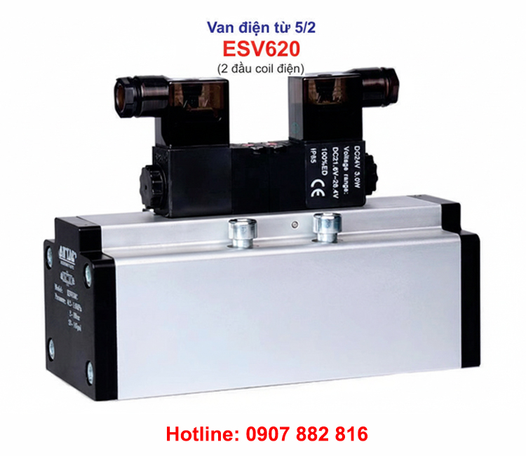 ESV620 là loại van khí 5/2, 2 đầu coil điện, ren 27mm