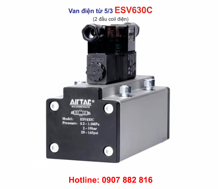 ESV630C là loại van khí 5/3, 2 đầu coil điện, ren 27mm