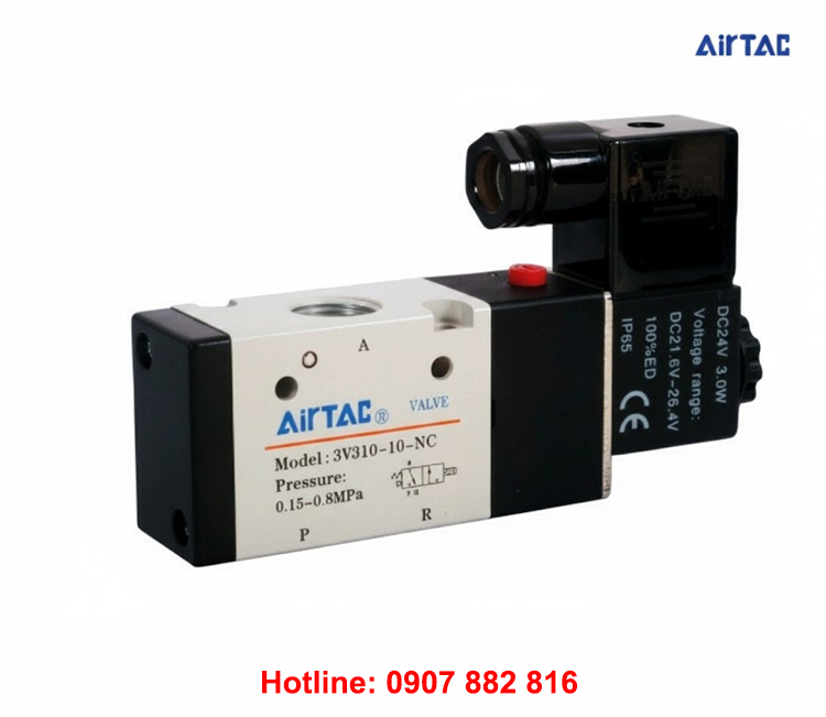 Van điện từ khí nén AIRTAC 3V310-10 là loại van khí nén 3/2 có 3 cổng 2 vị trí và 1 đầu coil điện, điều khiển bằng điện, thường được dùng để điều khiển xi lanh khí nén (loại xi lanh 1 chiều).