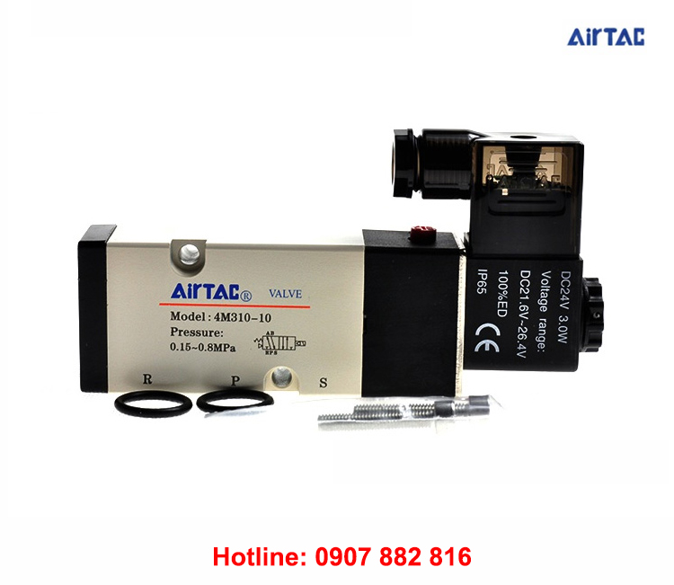 Van điện từ khí nén AIRTAC 4M310-10 là loại van khí nén 5/2 có 5 cổng 2 vị trí và 1 đầu coil điện, kích hoạt bằng điện, loại này thường được dùng để điều khiển xi lanh xoay (van xoay).