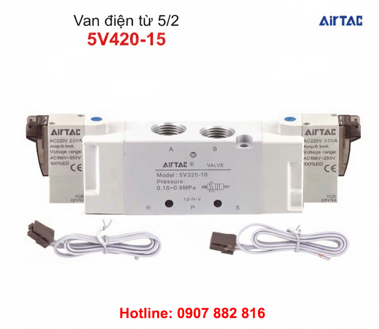 5V420-15 là loại van hơi 5/2 có 2 đầu coil điện (Ren 21mm)