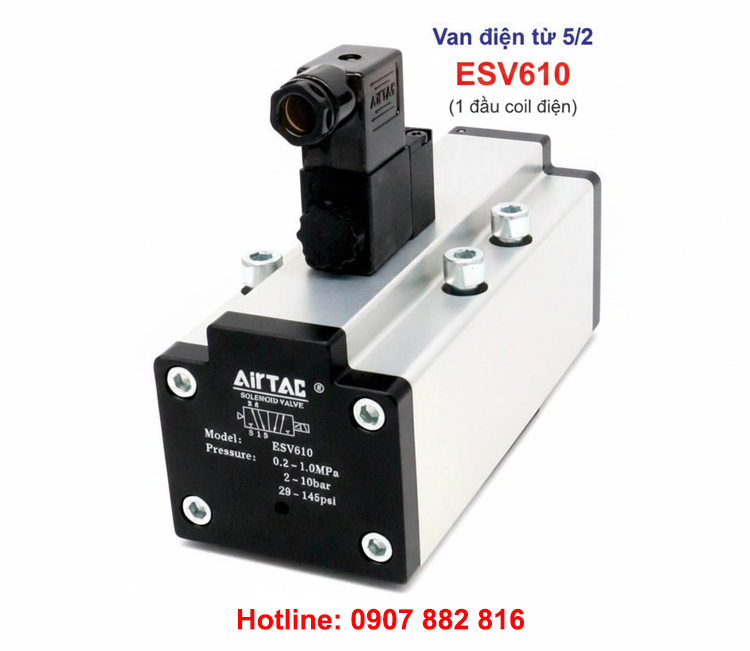 ESV610 là loại van khí 5/2, 1 đầu coil điện, ren 27mm