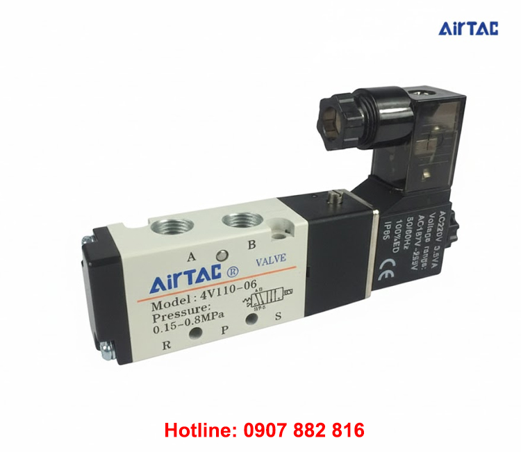 Van điện từ khí nén AIRTAC 4V110-06 là loại van khí nén 5/2 có 5 cổng 2 vị trí và 1 đầu coil điện, kích hoạt và điều khiển bằng điện, thường được dùng để điều khiển xi lanh khí nén.