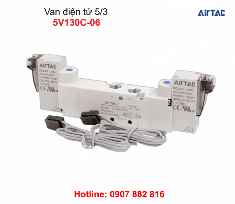 5V130C-06 là loại van hơi 5/3 có 2 đầu coil điện (Ren 9,6mm)