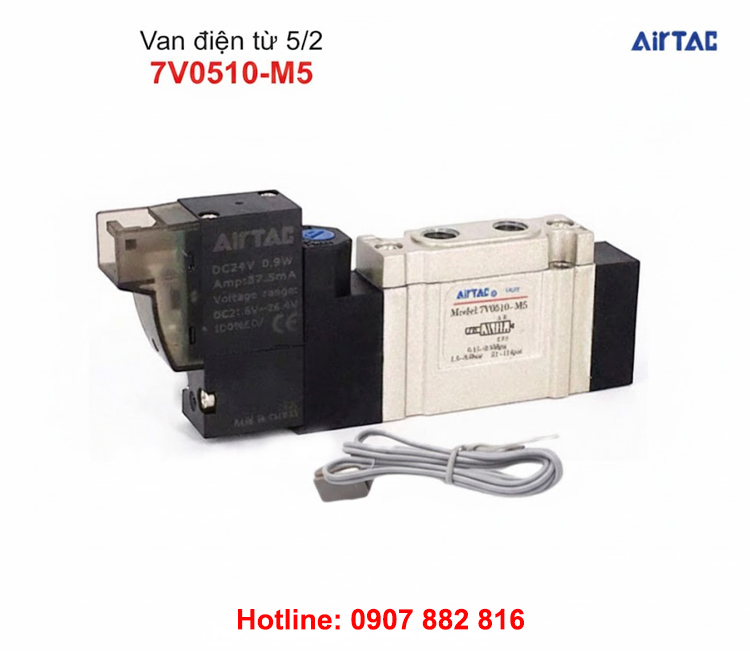 7V0510-M5 là loại van hơi 5/2 có1 đầu coil điện (Ren M5)
