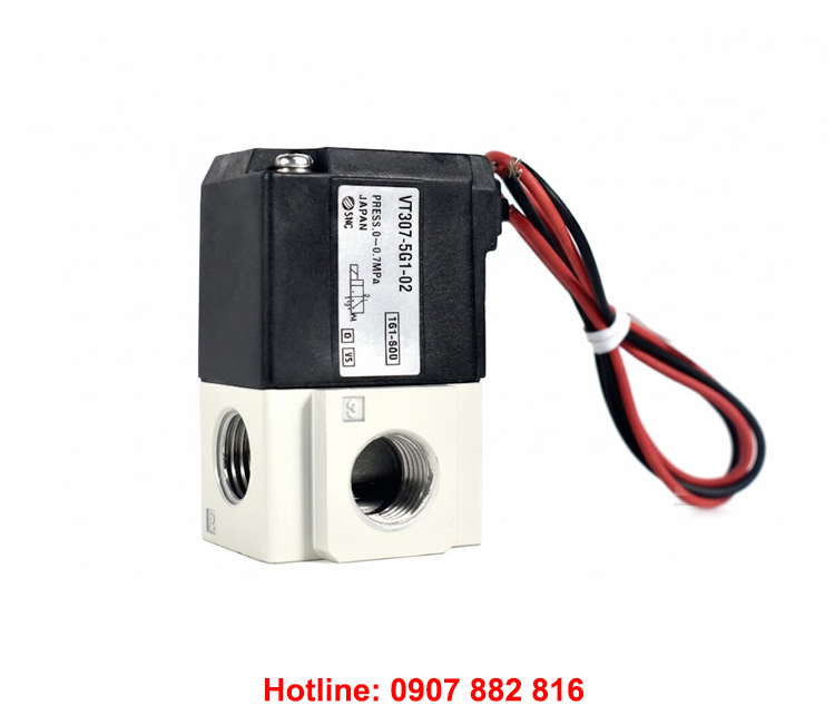 Van điện từ khí nén SMC VT307 là loại van khí nén 3/2 có 3 cổng 2 vị trí và 1 đầu coil điện, thường được dùng để điều khiển xi lanh khí nén (loại xi lanh 1 chiều).