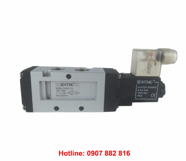 Van khí nén 5/2 STNC FG2531-10L là loại van hơi có 5 cổng 2 vị trí (5/2) và 1 đầu coil điện, thường được dùng để điều khiển và phân phối khí giúp xi lanh khí nén (ben hơi) hoạt động.