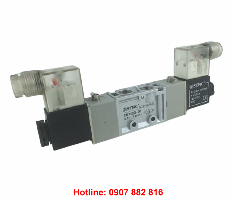 Van solenoid khí nén STNC TG2532 là loại van hơi có 5 cổng 2 vị trí (5/2) và 2 đầu coil điện, thường được dùng để điều khiển và phân phối khí giúp xi lanh khí nén (ben hơi) hoạt động.